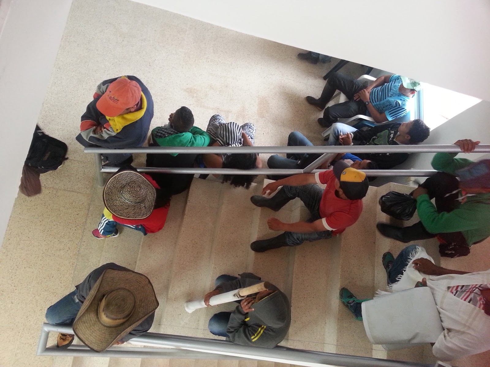 En las anteriores fotos se muestra la tranquilidad con la que se vivió la espera al dialogo en las instalaciones de la alcaldía. Los funcionarios al interior tomando videos, policías en el interior, manifestantes en las escalas permitiendo la circulación, el ingreso de policía, policía en la entrada de manera tranquila.