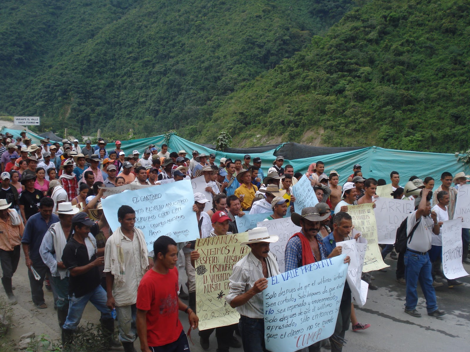 En las horas de la tarde las comunidades de los municipios de Briceño, Toledo, Ituango y San Andrés de Cuerquia marcharon por la zona de construcción de la hidroeléctrica. Alrededor de 700 personas se dirigieron a las oficinas del Consorcio Pescadero I, a los campamentos en los que se alojan los obreros, a las áreas de Argos, a las oficinas de EPM Ituango y por las calles del corregimiento del Valle, Municipio de Toledo. Los manifestantes que se encuentran acampando en la zona, expresaron su necesidad de garantías para iniciar el dialogo con EPM y la Gobernación de Antioquia como garante.